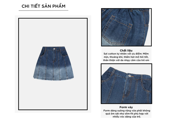 - Chân váy trẻ em với thiết kế đơn giản, đa năng, dễ mặc phom dáng vừa vặn phù hợp nhiều dáng người.