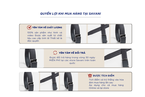 - Hỗ trợ đổi hàng trong vòng 30 ngày và miễn phí tại tất cả chi nhánh thuộc hệ thống thời trang Savani.