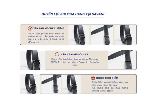 - Hỗ trợ đổi hàng trong vòng 30 ngày và miễn phí tại tất cả chi nhánh thuộc hệ thống thời trang Savani.