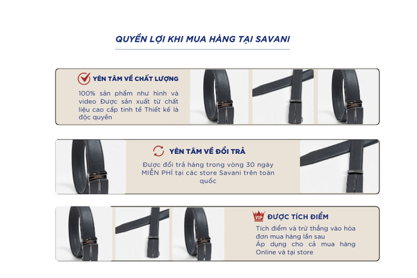 - Hỗ trợ đổi hàng trong vòng 30 ngày và miễn phí tại tất cả chi nhánh thuộc hệ thống thời trang Savani.