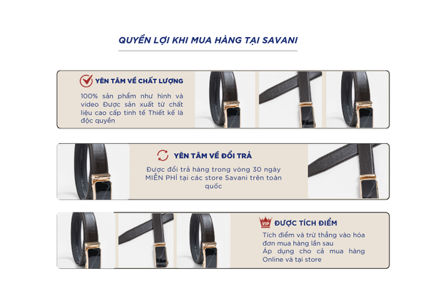 - Hỗ trợ đổi hàng trong vòng 30 ngày và miễn phí tại tất cả chi nhánh thuộc hệ thống thời trang Savani.