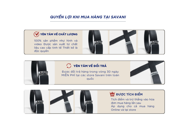 Dây lưng nam là một trong những sản phẩm tiên phong được Savani đặc biệt chú trọng về chất liệu. Sử dụng da bò cao cấp giúp Bề mặt da mịn mềm tự nhiên, có độ đàn hồi cao, thông thoáng, ít thấm nước nhẹ, làm nổi bật chất liệu tự nhiên của da bò.