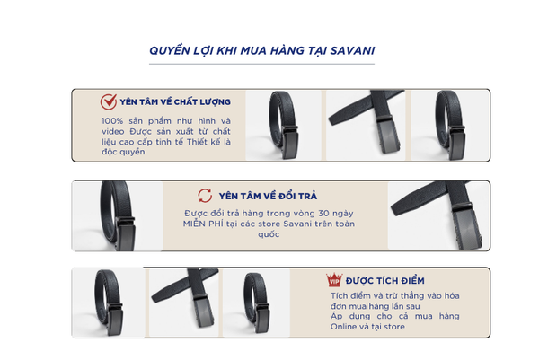 - Hỗ trợ đổi hàng trong vòng 30 ngày và miễn phí tại tất cả chi nhánh thuộc hệ thống thời trang Savani.