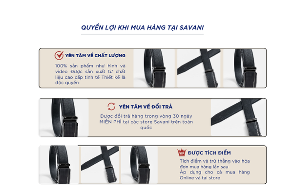 - Hỗ trợ đổi hàng trong vòng 30 ngày và miễn phí tại tất cả chi nhánh thuộc hệ thống thời trang Savani.