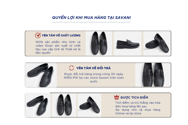 - Hỗ trợ đổi hàng trong vòng 30 ngày và miễn phí tại tất cả chi nhánh thuộc hệ thống thời trang Savani.