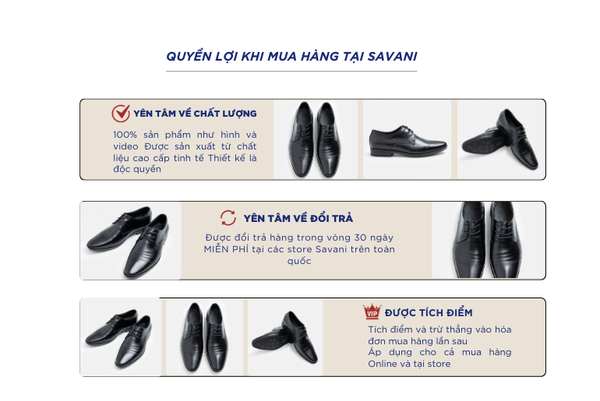 - Hỗ trợ đổi hàng trong vòng 30 ngày và miễn phí tại tất cả chi nhánh thuộc hệ thống thời trang Savani.