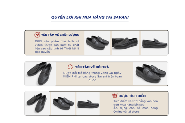 - Hỗ trợ đổi hàng trong vòng 30 ngày và miễn phí tại tất cả chi nhánh thuộc hệ thống thời trang Savani.