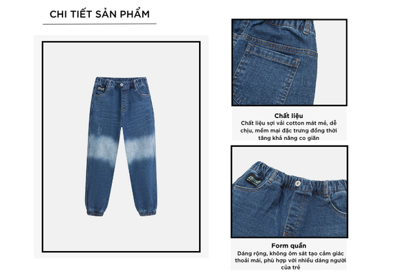 - Quần jean trẻ em với thiết kế đơn giản, đa năng, dễ mặc phom dáng vừa vặn phù hợp nhiều dáng người.
