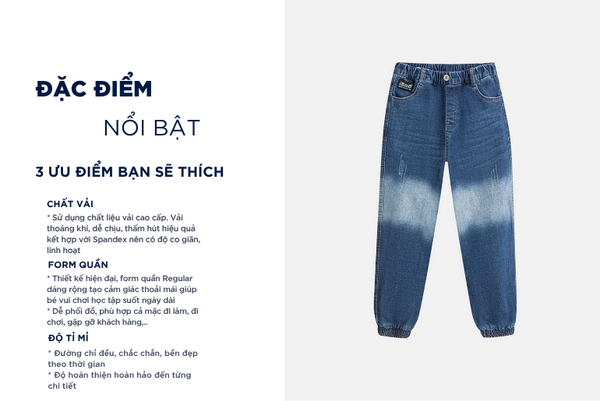 Quần jean được xem là một món đồ mà bất kì phụ huynh nào cũng nên lựa chọn cho con của mình. Bởi quần jean là món đồ đa năng - dễ phối - không kén dáng chỉ cần thay đổi một chút là đã có một outfit mới mẻ, dễ mặc và cực kỳ linh hoạt phù hợp với nhiều phong cách lại vừa giúp các bé thoải mái hoạt động suốt cả ngày dài.