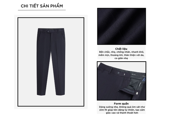 - Quần âu nam với thiết kế đơn giản, đa năng, dễ mặc phom dáng vừa vặn phù hợp nhiều dáng người.