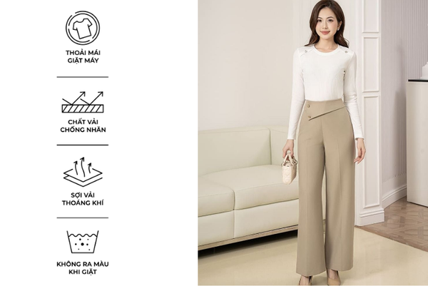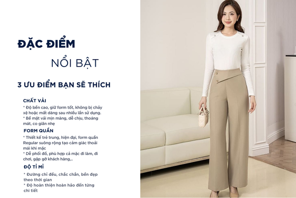 - Màu sắc trẻ trung, thanh lịch, rất dễ phối đồ: Có thể mặc với áo sơ mi, áo polo, áo phông,...Quần âu rất đa năng phù hợp cả khi mặc đi chơi, đi làm, đi gặp khách hàng,...