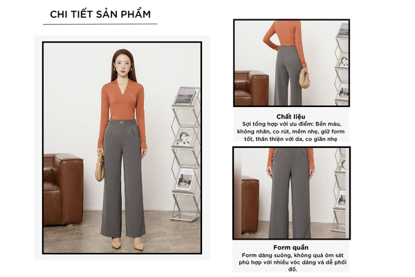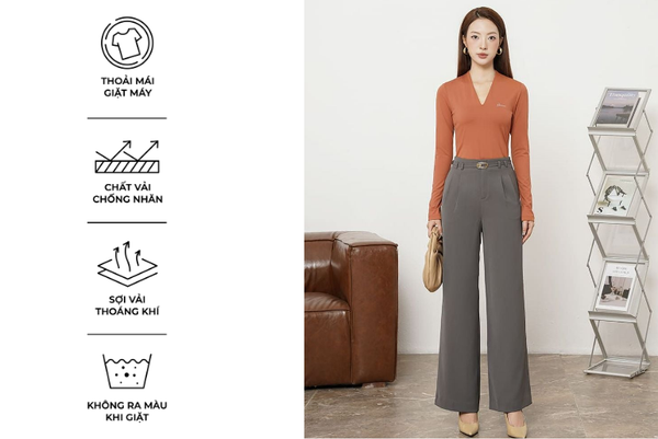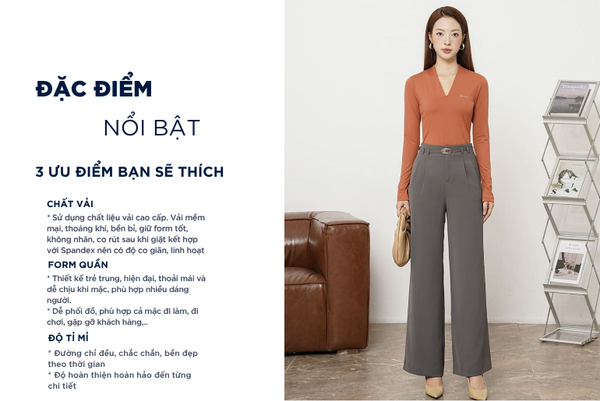 - Màu sắc trẻ trung, thanh lịch, rất dễ phối đồ: Có thể mặc với áo sơ mi, áo polo, áo phông,...Quần âu rất đa năng phù hợp cả khi mặc đi chơi, đi làm, đi gặp khách hàng,...