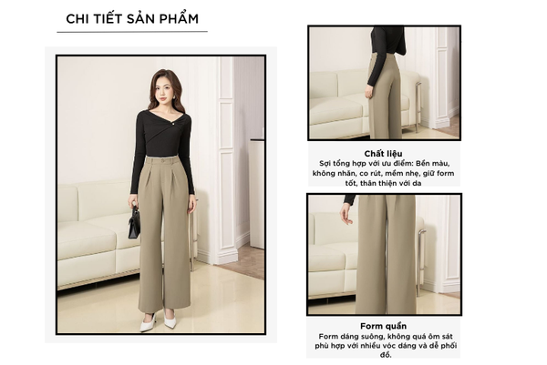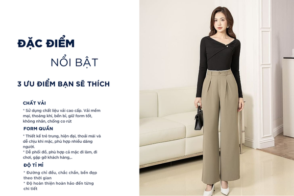- Màu sắc trẻ trung, thanh lịch, rất dễ phối đồ: Có thể mặc với áo sơ mi, áo polo, áo phông,...Quần âu rất đa năng phù hợp cả khi mặc đi chơi, đi làm, đi gặp khách hàng,...