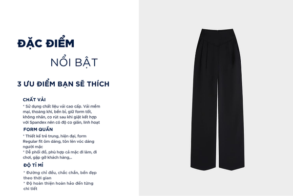 - Màu sắc trẻ trung, thanh lịch, rất dễ phối đồ: Có thể mặc với áo sơ mi, áo polo, áo phông,...Quần âu rất đa năng phù hợp cả khi mặc đi chơi, đi làm, đi gặp khách hàng,...