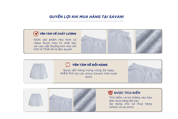 - Hỗ trợ đổi hàng trong vòng 30 ngày và miễn phí tại tất cả chi nhánh thuộc hệ thống thời trang Savani.