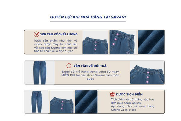 - Hỗ trợ đổi hàng trong vòng 30 ngày và miễn phí tại tất cả chi nhánh thuộc hệ thống thời trang Savani.