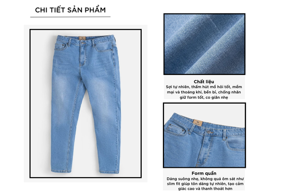- Quần jean nam với thiết kế đơn giản, đa năng, dễ mặc phom dáng vừa vặn phù hợp nhiều dáng người.