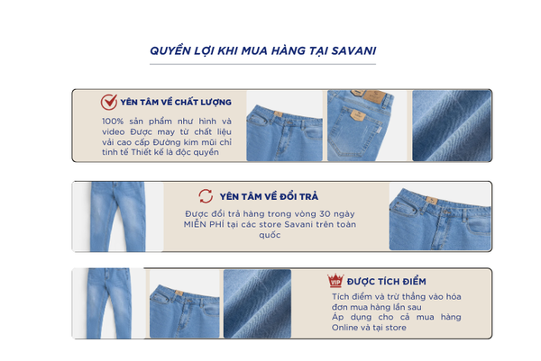 - Hỗ trợ đổi hàng trong vòng 30 ngày và miễn phí tại tất cả chi nhánh thuộc hệ thống thời trang Savani.