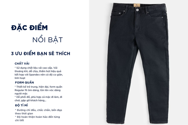- Màu sắc trẻ trung, thanh lịch, rất dễ phối đồ: Có thể mặc với áo sơ mi, áo polo, áo phông,...Quần jean rất đa năng phù hợp cả khi mặc đi chơi, đi tập thể thao hay cũng có thể mặc ở nhà, đi ngủ