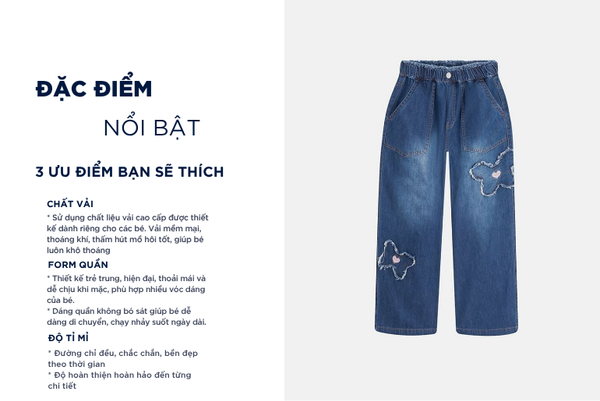 - Quần jean trẻ em với thiết kế đơn giản, đa năng, dễ mặc phom dáng vừa vặn phù hợp nhiều dáng người.