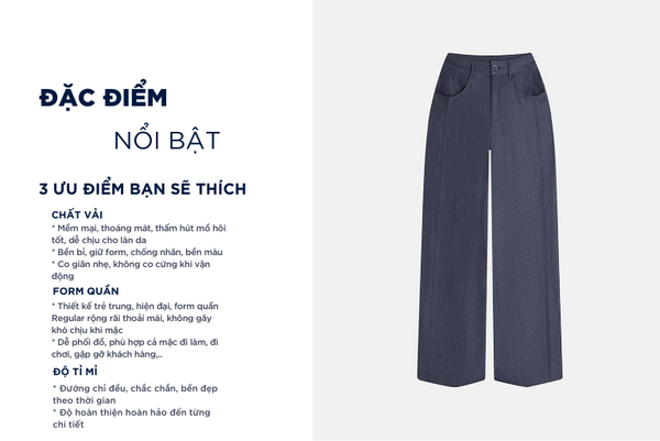 - Co giãn linh hoạt: Nhờ Spandex (4%) Mang lại khả năng co giãn 4 chiều, giúp quần ôm vừa vặn cơ thể mà vẫn dễ vận động.