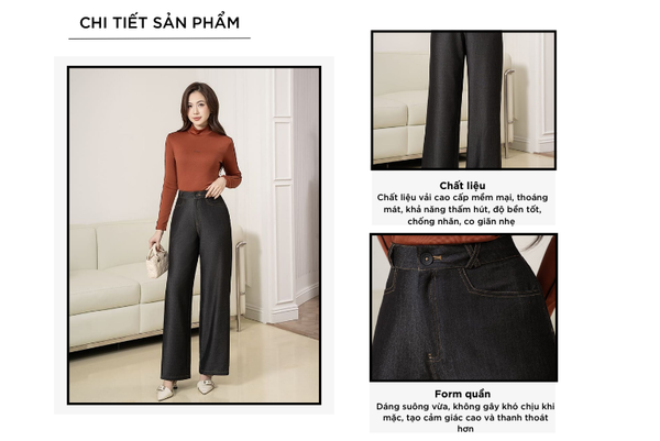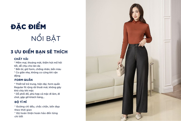 - Co giãn linh hoạt: Nhờ Spandex (4%) Mang lại khả năng co giãn 4 chiều, giúp quần ôm vừa vặn cơ thể mà vẫn dễ vận động.