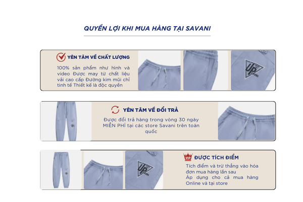 - Hỗ trợ đổi hàng trong vòng 30 ngày và miễn phí tại tất cả chi nhánh thuộc hệ thống thời trang Savani.