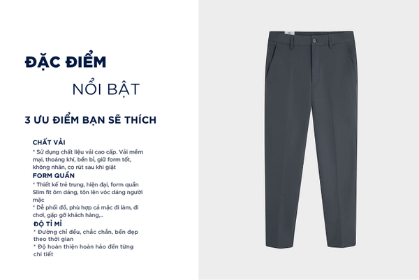 - Form Slim fit ôm sát, mang lại vẻ ngoài gọn gàng, nam tính tôn lên vóc dáng nhưng vẫn đảm bảo sự thoải mái khi vận động