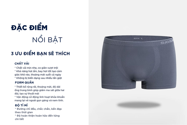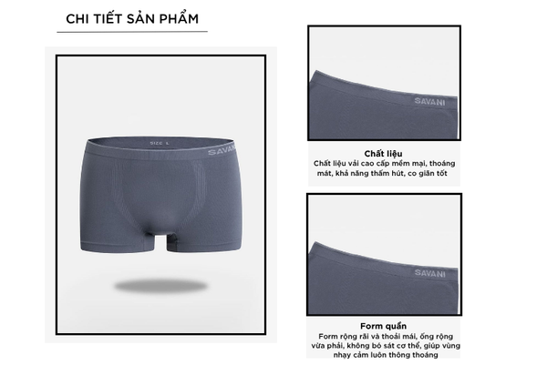 - Form Boxer ôm gọn cơ thể, thoáng mát không bó sát cơ thể, giúp vùng nhạy cảm luôn thông thoáng và hạn chế cảm giác bí bách.