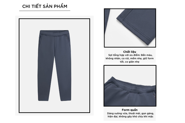 Quần nỉ nam là một trong những sản phẩm tiên phong được Savani đặc biệt chú trọng về chất liệu. Sự kết hợp giữa Polyester (95%) và Spandex (5%) giúp sản phẩm có các ưu điểm như: Độ bền cao, chống nhăn, nhanh khô và giữ màu tốt, co giãn nhẹ, ôm cơ thể mà vẫn thoải mái.