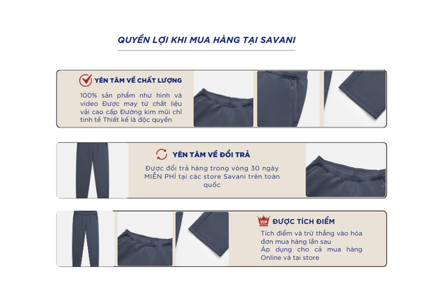 - Hỗ trợ đổi hàng trong vòng 30 ngày và miễn phí tại tất cả chi nhánh thuộc hệ thống thời trang Savani.