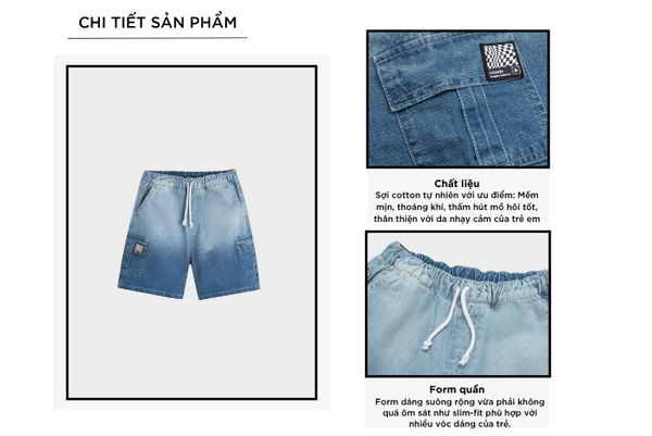 - Quần short trẻ em với thiết kế đơn giản, đa năng, dễ mặc phom dáng vừa vặn phù hợp nhiều dáng người.