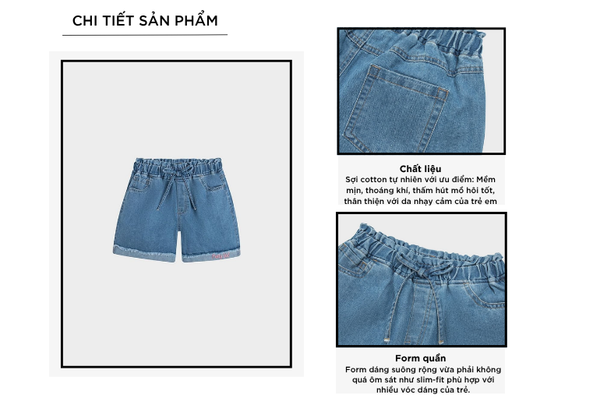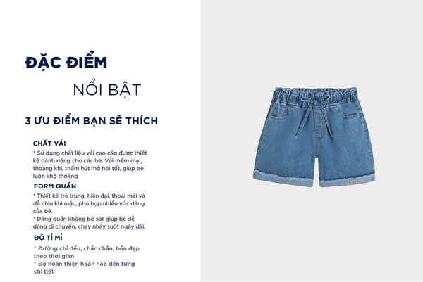 - Quần short trẻ em với thiết kế đơn giản, đa năng, dễ mặc phom dáng vừa vặn phù hợp nhiều dáng người.