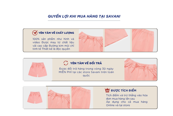 - Hỗ trợ đổi hàng trong vòng 30 ngày và miễn phí tại tất cả chi nhánh thuộc hệ thống thời trang Savani.