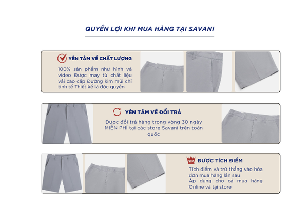 - Hỗ trợ đổi hàng trong vòng 30 ngày và miễn phí tại tất cả chi nhánh thuộc hệ thống thời trang Savani.