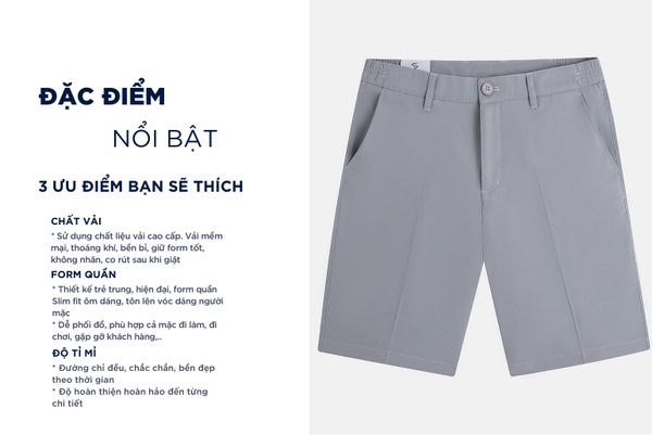 - Màu sắc trẻ trung, thanh lịch, rất dễ phối đồ: Có thể mặc với áo sơ mi, áo polo, áo phông, áo ba lỗ,...Quần short rất đa năng phù hợp cả khi mặc đi chơi, đi tập thể thao hay cũng có thể mặc ở nhà, đi ngủ