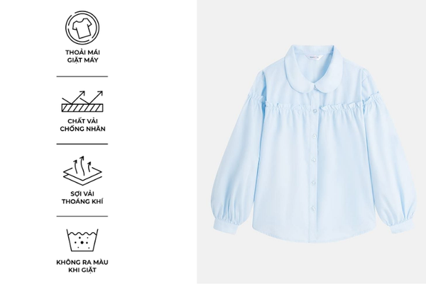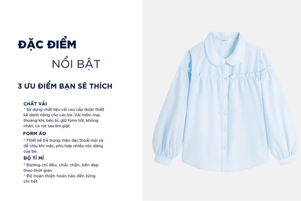 - Áo sơ mi trẻ em được thiết kế thoải mái, dễ vận động giúp bé thoải mái chạy nhảy, học tập hoặc vui chơi mà không bị cản trở cử động
