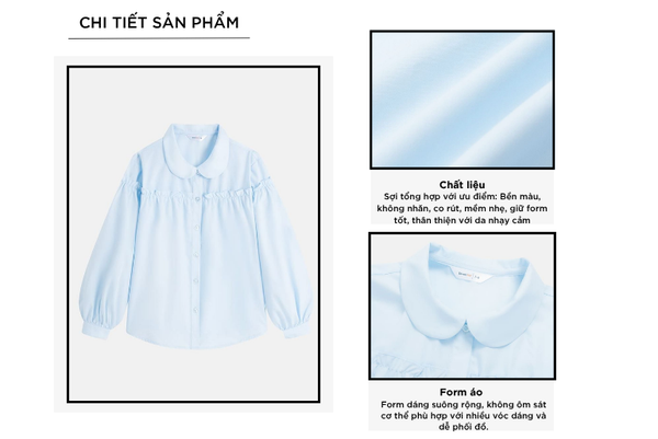 - Màu sắc tinh tế, nhã nhặn, năng động giúp bé gái có thể dễ dàng phối cùng quần short, quần jeans…tạo nên nhiều phong cách khác nhau phù hợp nhiều dịp: đi học, đi chơi, đi tiệc.