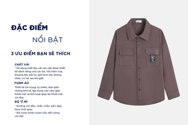 - Áo sơ mi trẻ em được thiết kế thoải mái, dễ vận động giúp bé thoải mái chạy nhảy, học tập hoặc vui chơi mà không bị cản trở cử động