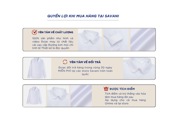 - Hỗ trợ đổi hàng trong vòng 30 ngày và miễn phí tại tất cả chi nhánh thuộc hệ thống thời trang Savani.