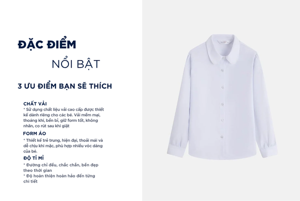 - Áo sơ mi trẻ em được thiết kế thoải mái, dễ vận động giúp bé thoải mái chạy nhảy, học tập hoặc vui chơi mà không bị cản trở cử động