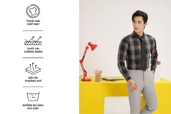 - Áo sơ mi dài tay nam được thiết kế theo phong cách hiện đại, tinh tế, sang trọng lịch lãm dành riêng cho nam giới yêu thích sự chỉn chu nhưng vẫn thoải mái trong mọi hoạt động. Tay áo có thể xắn lên để tạo sự năng động, trẻ trung