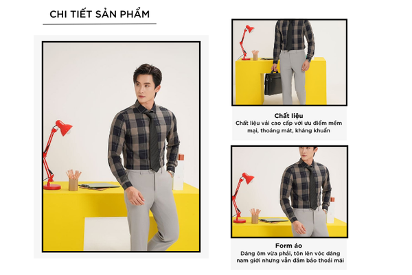 - Form Slim fit(dáng ôm vừa), tạo vẻ ngoài chỉn chu, lịch thiệp giúp tôn lên vóc dáng nam giới, tạo cảm giác cao ráo, cân đối