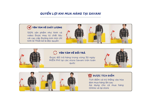 - Hỗ trợ đổi hàng trong vòng 30 ngày và miễn phí tại tất cả chi nhánh thuộc hệ thống thời trang Savani.