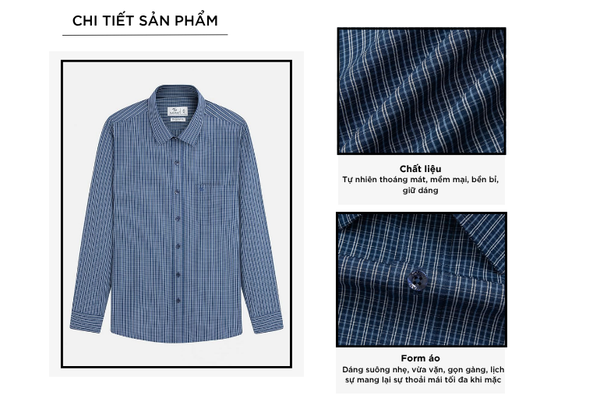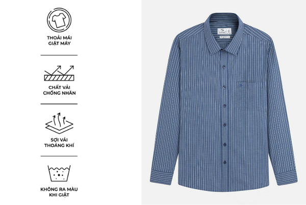 - Áo sơ mi dài tay nam được thiết kế theo phong cách hiện đại, tinh tế, sang trọng lịch lãm dành riêng cho nam giới yêu thích sự chỉn chu nhưng vẫn thoải mái trong mọi hoạt động. Tay áo có thể xắn lên để tạo sự năng động, trẻ trung