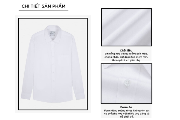 - Form Regular fit(dáng suông vừa), tạo vẻ ngoài chỉn chu, lịch thiệp giúp tôn lên vóc dáng nam giới, tạo cảm giác cao ráo, cân đối