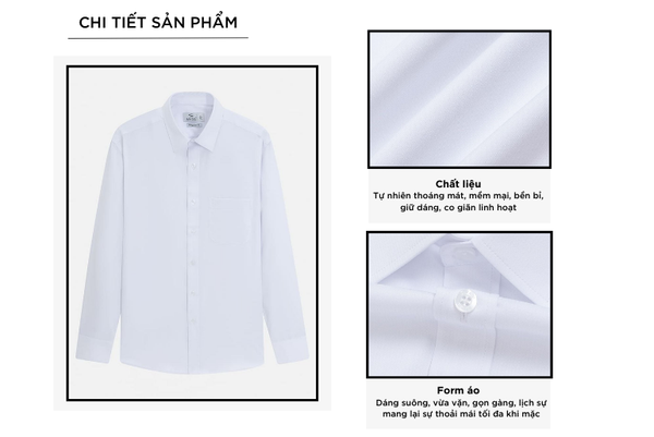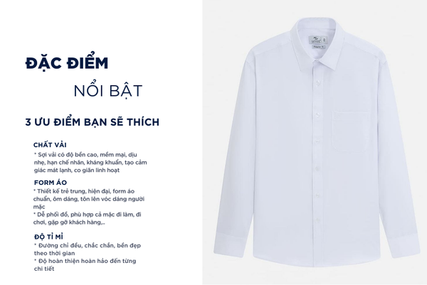 - Áo sơ mi dài tay nam được thiết kế theo phong cách hiện đại, tinh tế, sang trọng lịch lãm dành riêng cho nam giới yêu thích sự chỉn chu nhưng vẫn thoải mái trong mọi hoạt động. Tay áo có thể xắn lên để tạo sự năng động, trẻ trung
