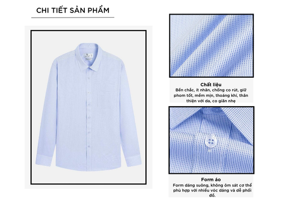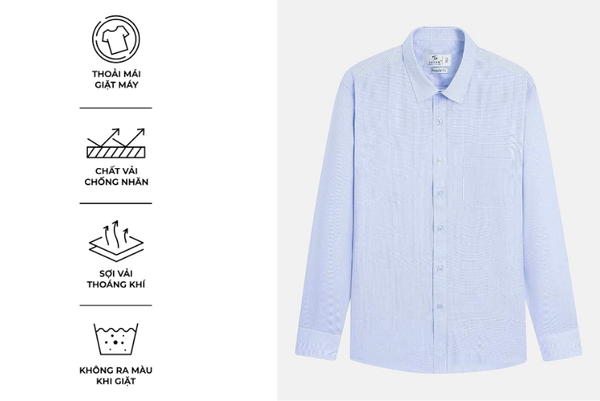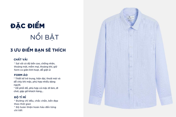 - Áo sơ mi dài tay nam được thiết kế theo phong cách hiện đại, tinh tế, sang trọng lịch lãm dành riêng cho nam giới yêu thích sự chỉn chu nhưng vẫn thoải mái trong mọi hoạt động. Tay áo có thể xắn lên để tạo sự năng động, trẻ trung