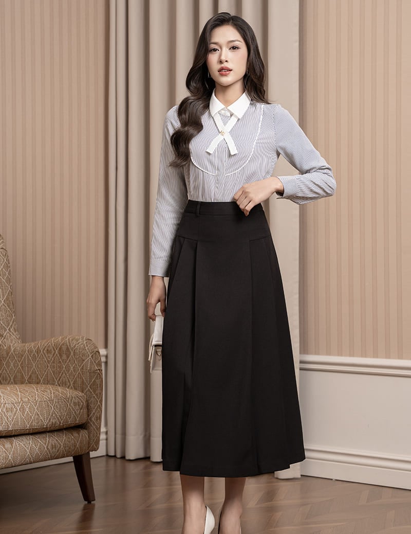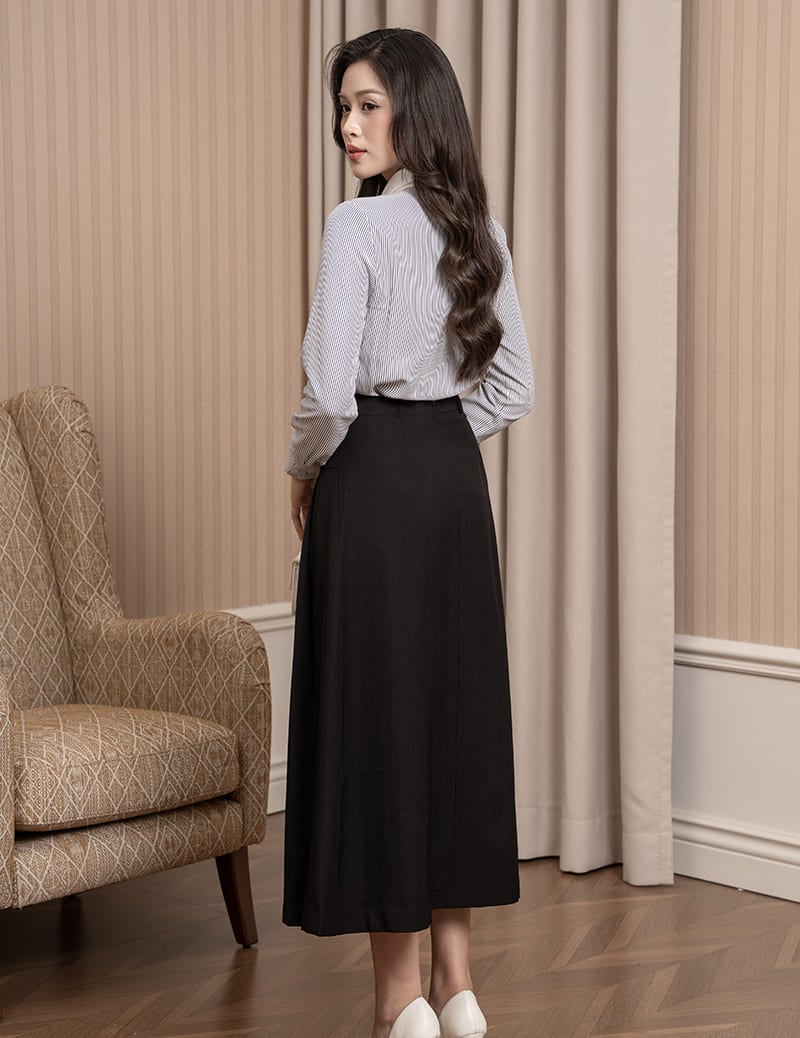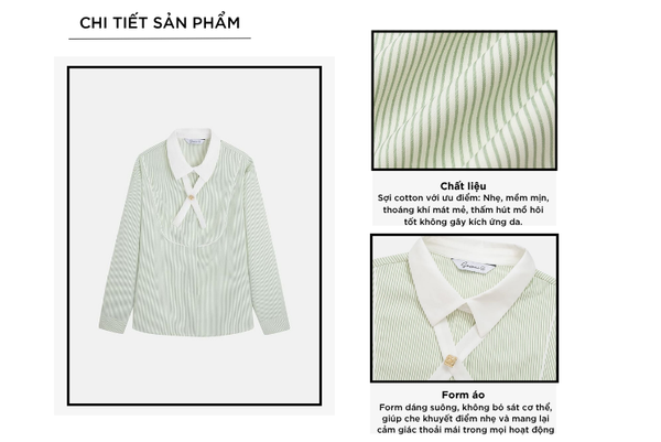 - Form Regular fit suông vừa, phù hợp nhiều dáng người. mang lại cảm giác thoải mái cả ngày, đồng thời vẫn giữ được vẻ thanh lịch, nữ tính.