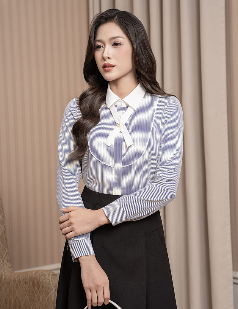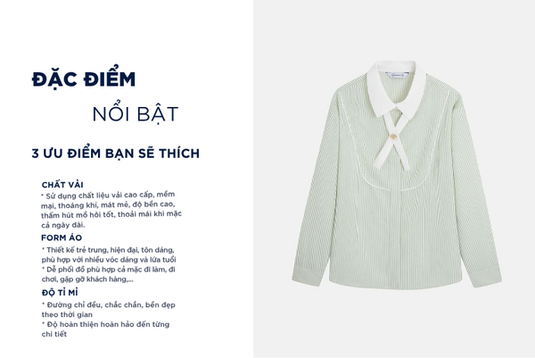 - Áo sơ mi dài tay nữ được thiết kế theo phong cách hiện đại, thanh lịch, gọn gàng, tinh tế, giúp tôn lên đường cong tự nhiên mà vẫn giữ được vẻ kín đáo, lịch sự.
